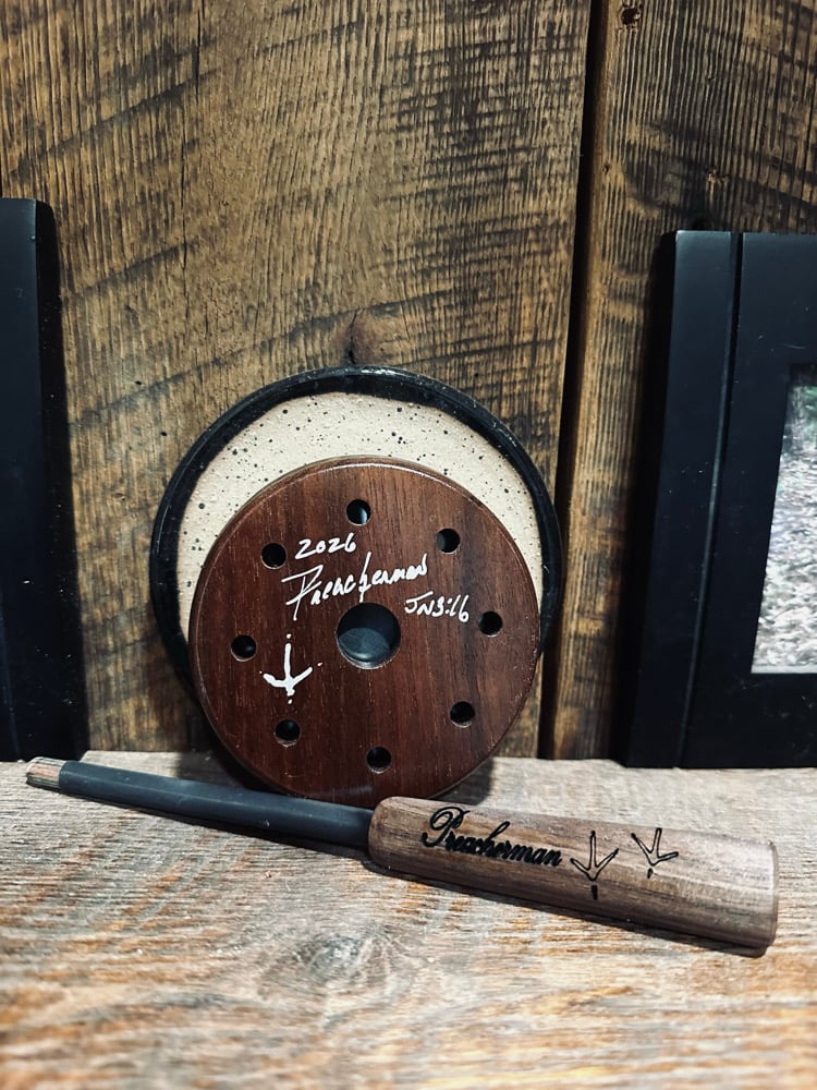 Walnut pot slate/glass with preacherman engraved two piece Dymondwood striker